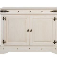 Небольшой комод для посуды впишется в интерьер столовой или кухни. Идеален для обустройства комнаты в загородном доме. Оборудован широкой полкой, скрытой за распашными дверцами с кованой фурнитурой. Благодаря компактному размеру, подойдет для небольшого помещения.