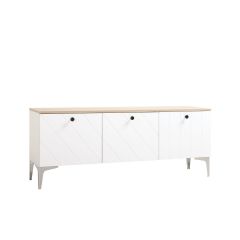 Отличительной чертой тумбы ТВ являются оригинальные фасады - рельефные линии зададут ритм и динамику вашему пространству, фасады можно навесить в любом порядке по вашему усмотрению, они универсальны, сделаны из МДФ с покрытием soft-tuch обладают бархатистой поверхностью, легки в уходе и приятны тактильно. Еще большего комфорта добавляют петли с доводчиками - обеспечивают бесшумное закрывание. Стильные металлические ножки зрительно растворяются в окружении и создают особую иллюзию "парящей" тумбы.